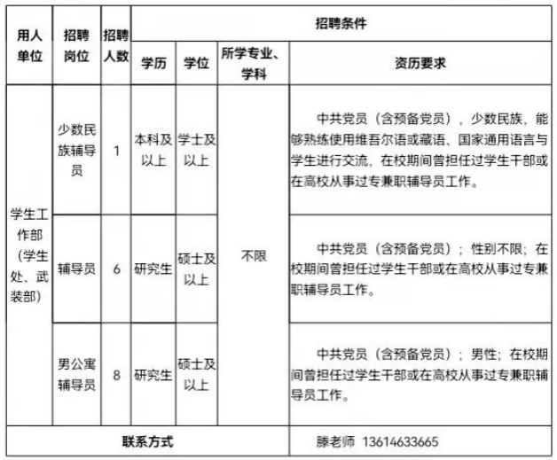 依据《黑龙江省事业单位公开招聘人员暂行办法》《黑龙江省省直事业单位公开招聘工作人员实施细则》《关于进一步做好省直事业单位公开招聘工作的通知》和《关于全面下放省直事业单位公开招聘管理权限的通知》等文件精神,结合学校专业技术人才、管理人才队伍建设实际,经学校研究决定,面向社会公开招聘辅导员,现将有关事宜公告如下: