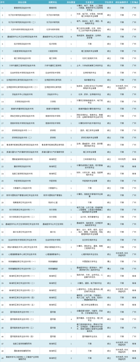 注:更多详细岗位信息可见暨南大学招聘网,每名应聘者只可选报1个岗位。