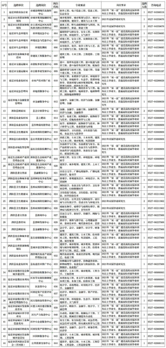 1. 宿迁市2021年度选聘应届紧缺专业毕业生岗位简介表