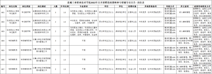 盐城工业职业技术学院人事处负责回答此次招聘政策咨询。