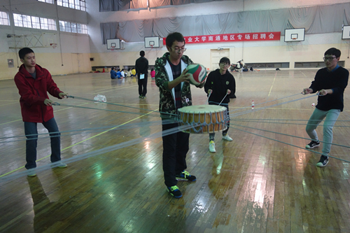在学院聘请的专业老师的带领下,素质拓展活动紧张而有序的开展,学生会主席团组成的工作人员进行全程协助和测评。
