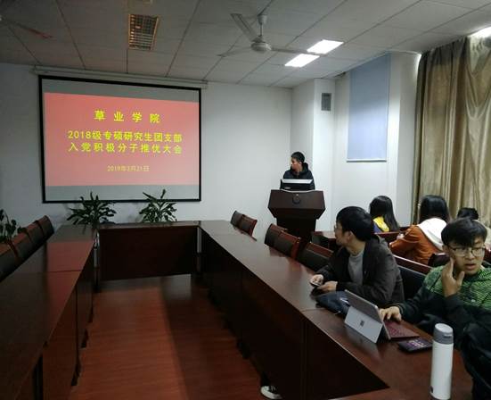 2019年3月21日下午,H动漫 2018级专硕研究生团支部在理科南楼F304召开入党积极分子推优大会。会议由团支部书记薛轶凡主持。