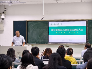 周建鹏作了毕业生就业形势交流。他基于往届毕业生就业率、市场供给等实际数据,为同学们深入剖析面临的就业形势,通过详实数据和生动案例,介绍了就业市场现状趋势,帮助大家对就业形势有全面的认识。他重点强调把握秋季招聘的重要性鼓励同学们充分利用这一时机,积极准备简历、参加宣讲会、投递简历,并主动与招聘单位沟通交流,争取更多的面试机会和就业可能性。还提醒同学们要为自己寻找备选路径,精准定位个人发展方向,根据自己的兴趣、特长和职业规划,多方面了解和尝试不同的职业机会和发展路径。对考公的同学,他建议大家根据自己的实际情况和报考意向,合理安排时间,制定详细的计划,积极做好复习备考
