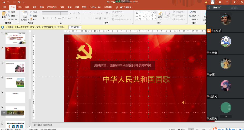 会议伊始,全体起立奏唱《中华人民共和国国歌》。