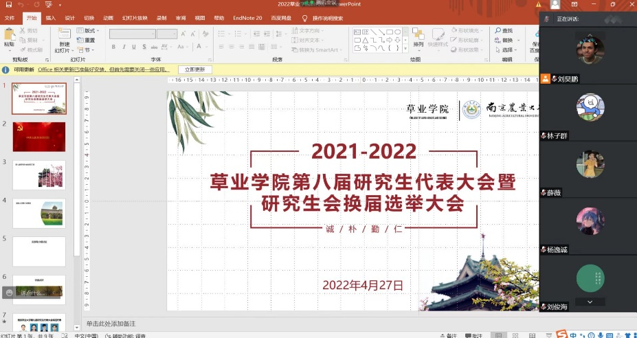 第八次研究生代表大会暨研究生会换届选举大会在理科南楼F304会议室和腾讯会议同步召开。